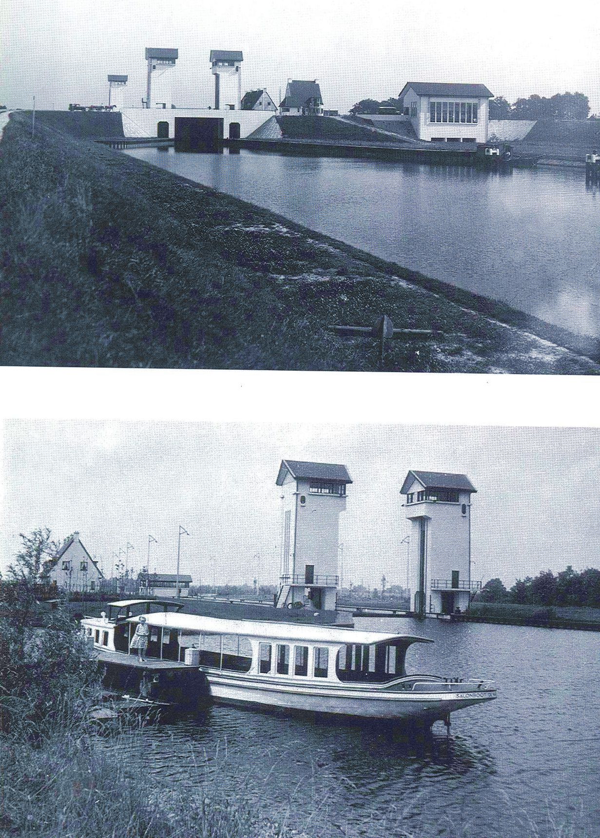 Links sluis Eefde met de tussenbrug, rechts de sluizen Delden (boven) en de Waarbeek onder zonder tussenbrug.